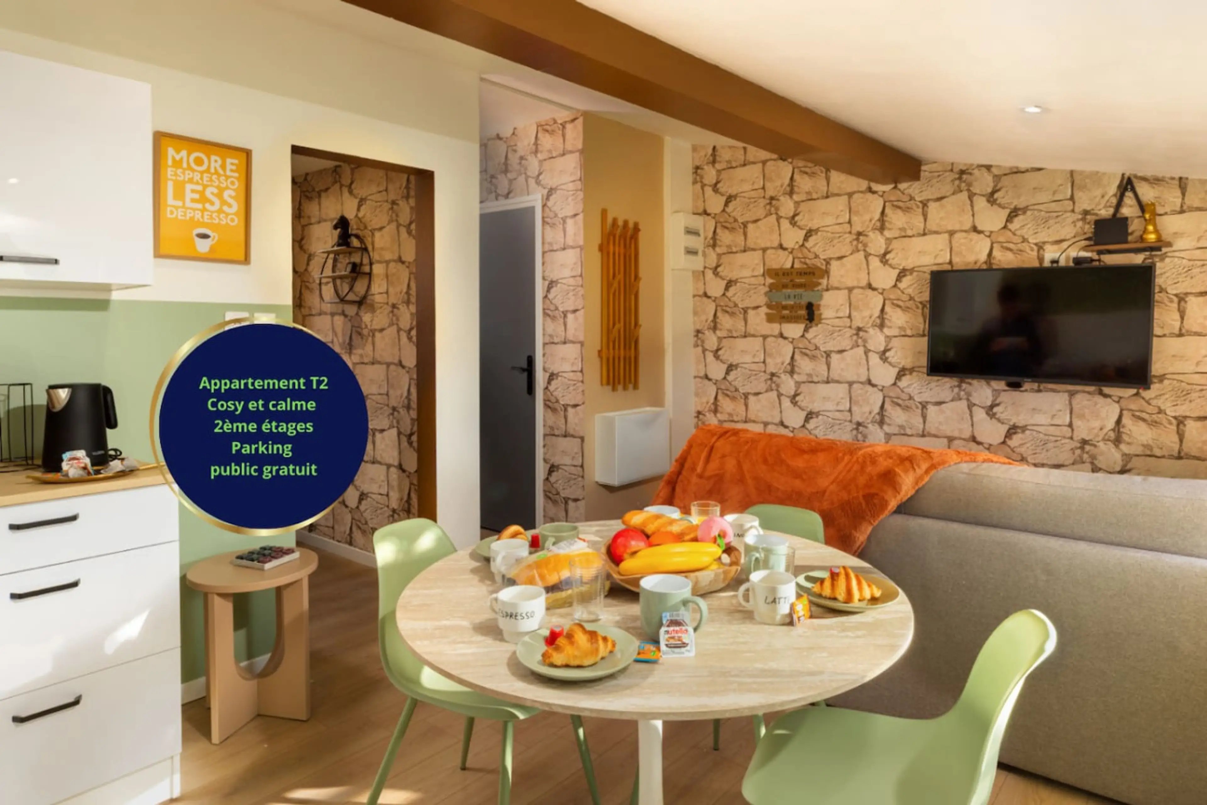 🎭 Idéal pour vivre le Carnaval de Limoux ou séjourner en déplacement pro ! T2 de 35 m² au 2ème étage (sans ascenseurs), à 3 min à pied du centre. Chambre séparée + canapé-lit, Wi-Fi rapide, TV connectée. 📍 En télétravail ? Profitez d’une connexion fiable, d’un espace de travail pratique, et ...