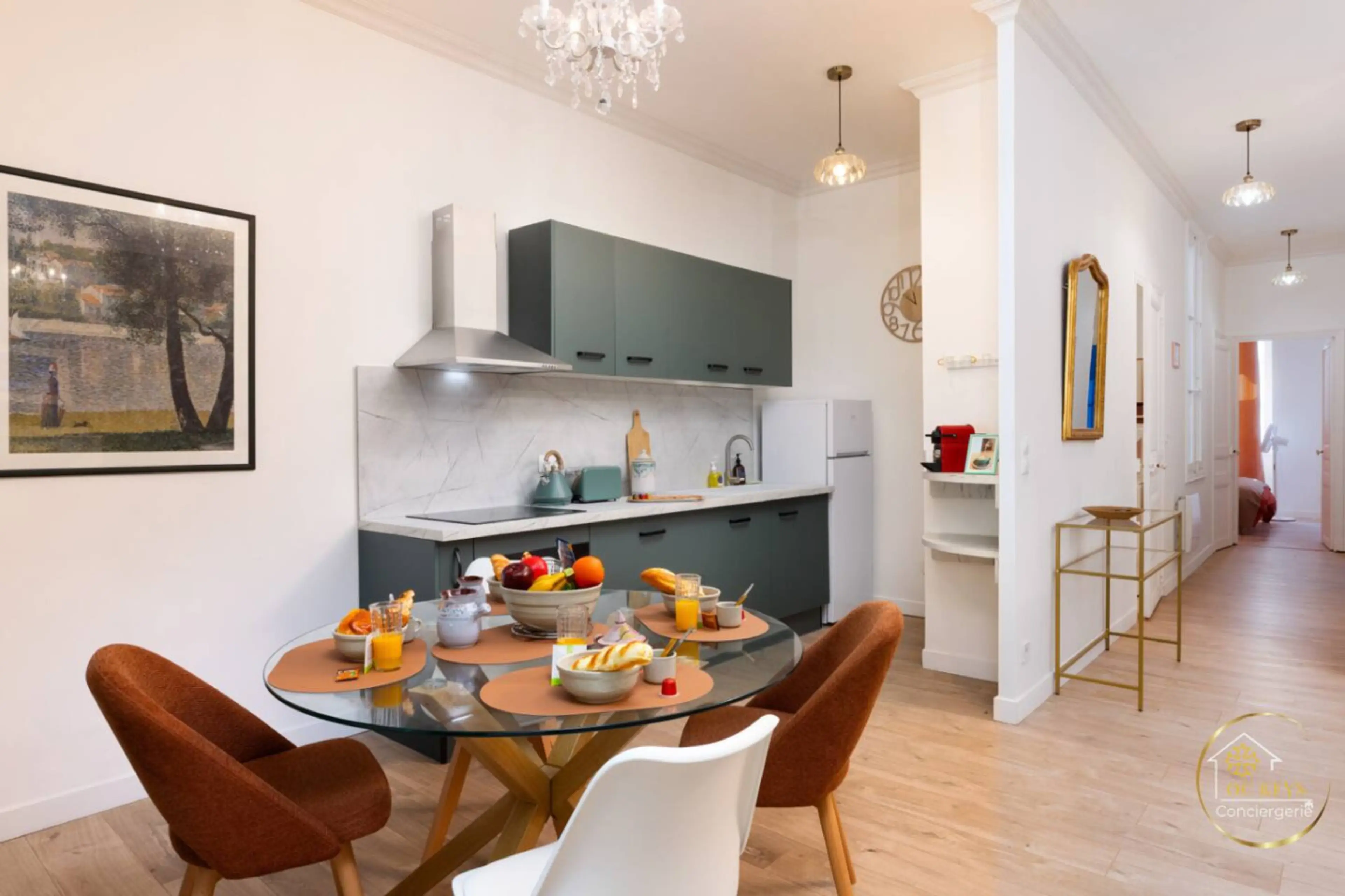 🌟Votre cocon à Narbonne 🌟 À deux pas de la gare (5min à pied) , des Halles et des Grands Buffets, vous poussez la porte : - Salon chic et élégant, hauts plafonds, cuisine prête pour le brunch, idéal pour passer vos meilleures vacances à Narbonne - 2ème étage sans ascenseur - Deux belles chamb...